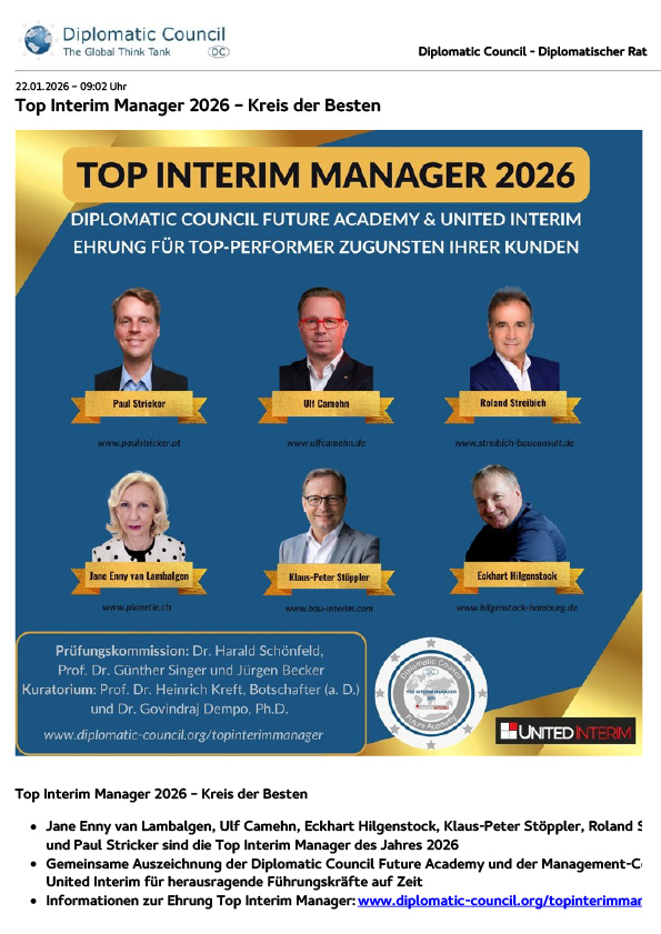 - Top Interim Manager 2026 (Diplomatic Council Future Academy + United Interim)